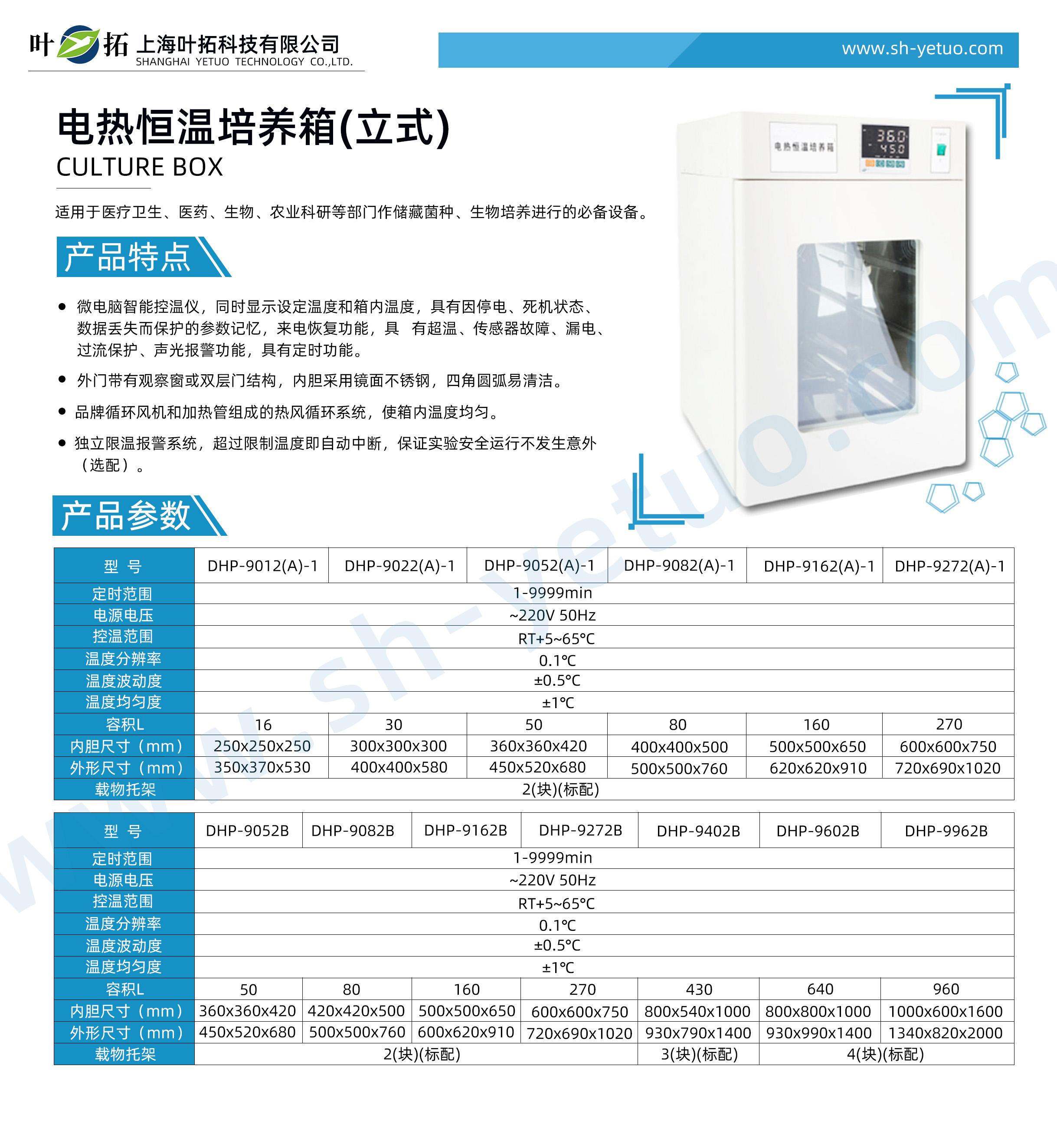 葉拓 DHP-9162-1 立式電熱恒溫培養箱產品特點