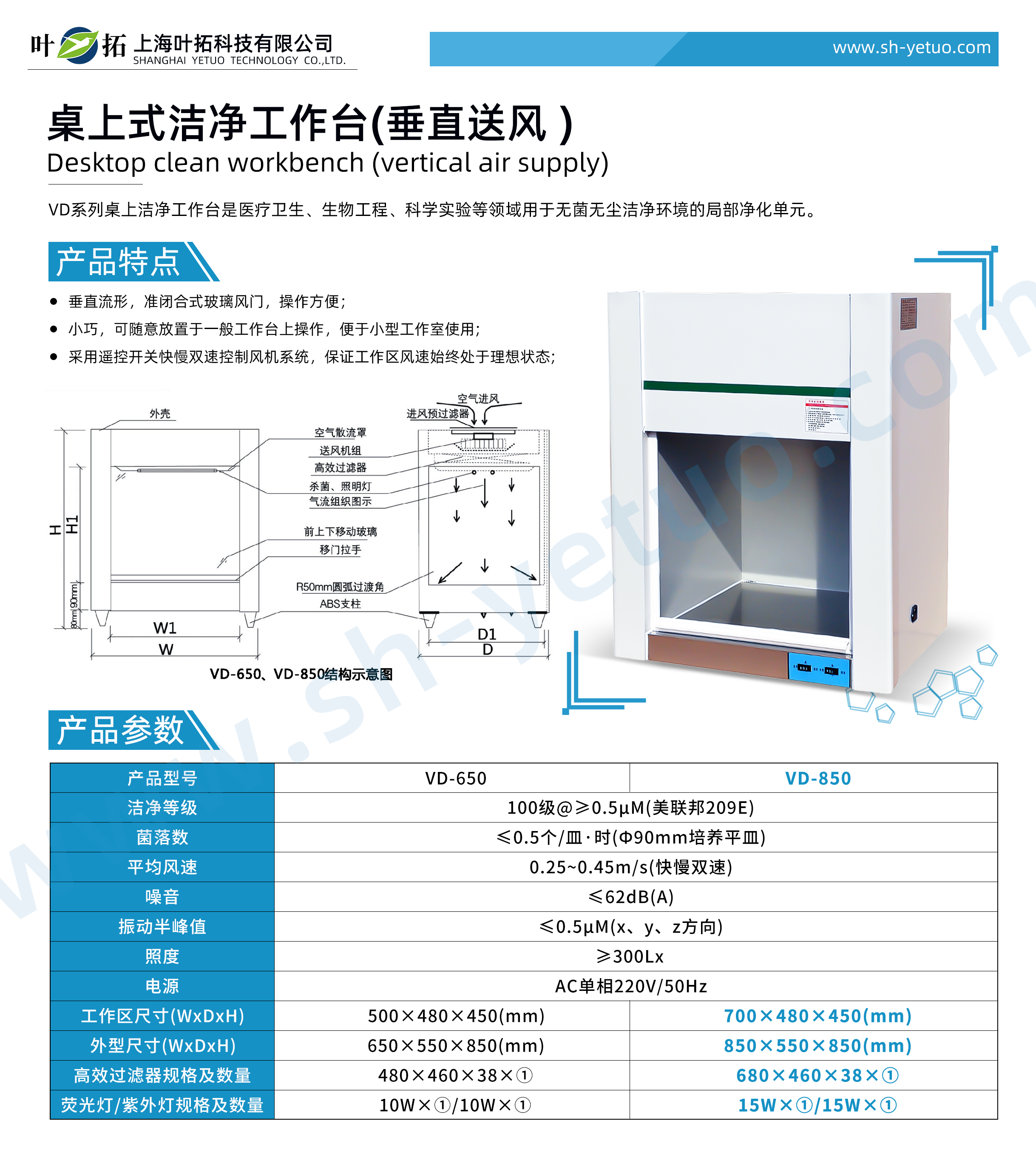 葉拓 VD-850 桌上式垂直送風潔凈工作臺詳細參數