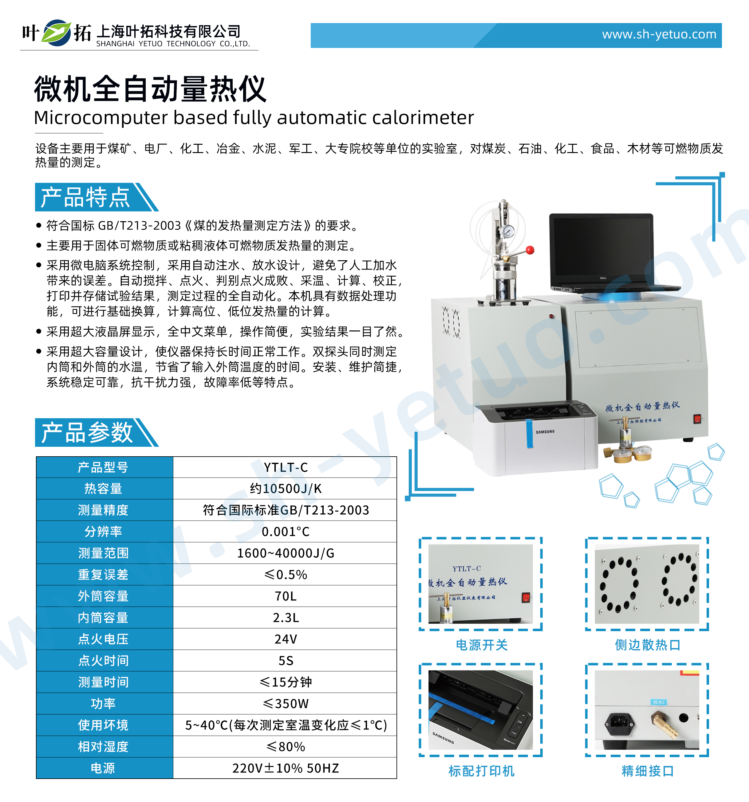 上海葉拓 YTLT-C 微機全自動量熱儀詳細參數