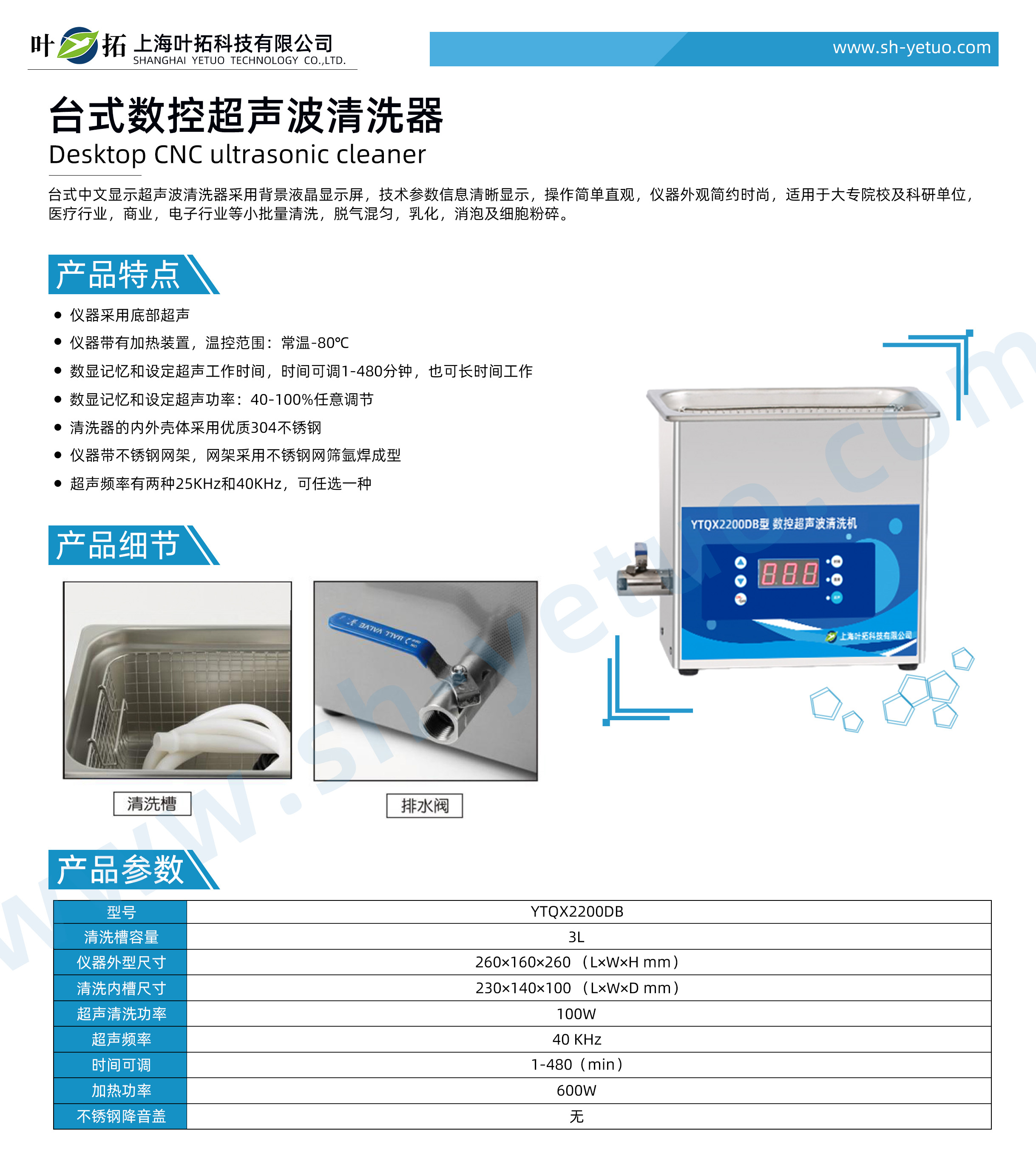 葉拓 YTQX2200DB 臺式數控超聲波清洗機詳細參數