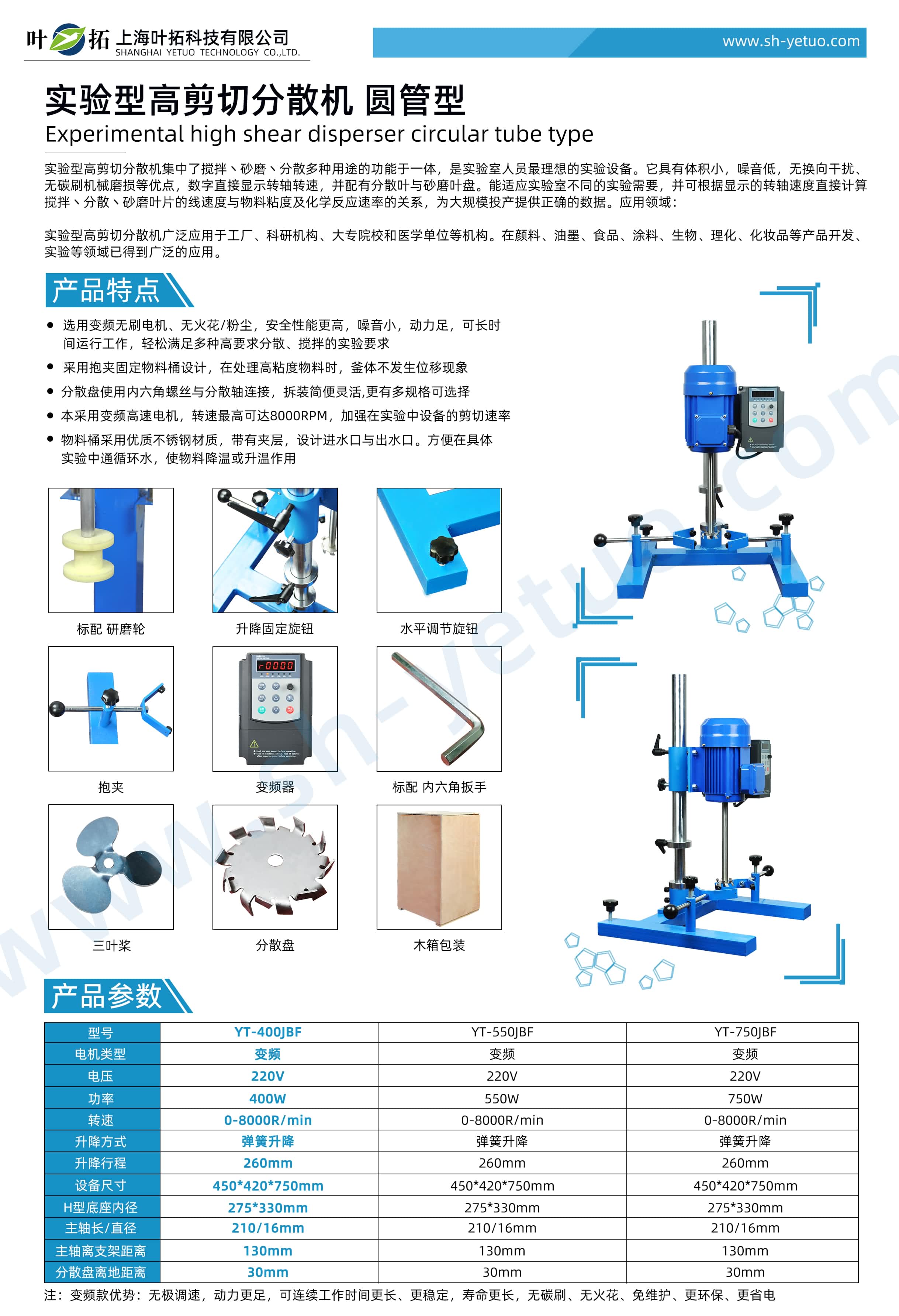 葉拓 YT-400JBF 實驗型圓管分散機詳細參數
