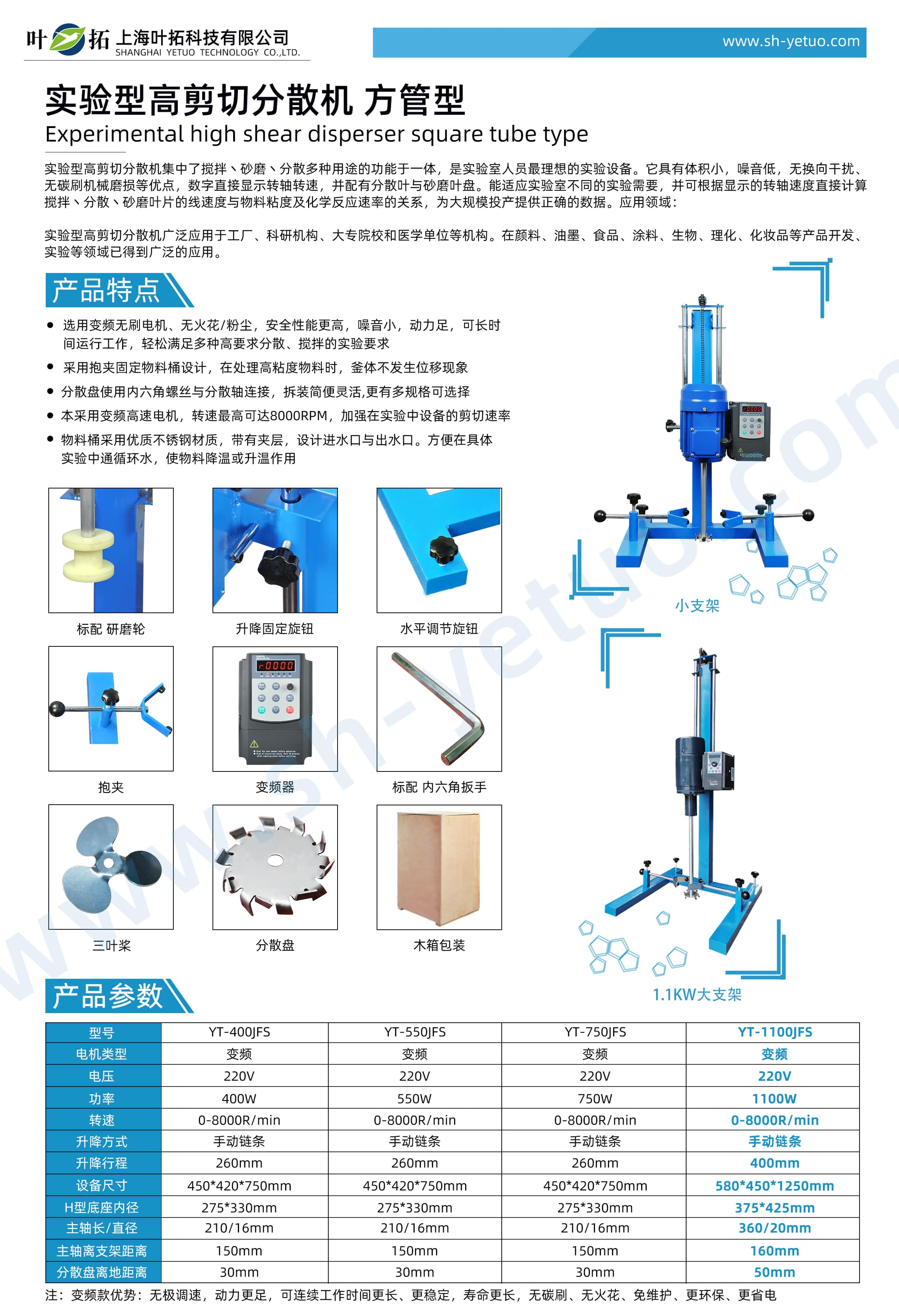 葉拓 YT-1100JFS 實(shí)驗(yàn)型方管分散機(jī)詳細(xì)參數(shù)
