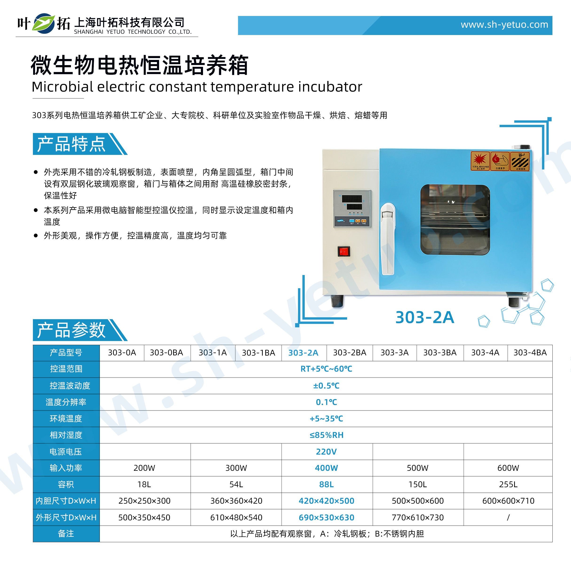 葉拓 303-2A 微生物培養箱詳細參數