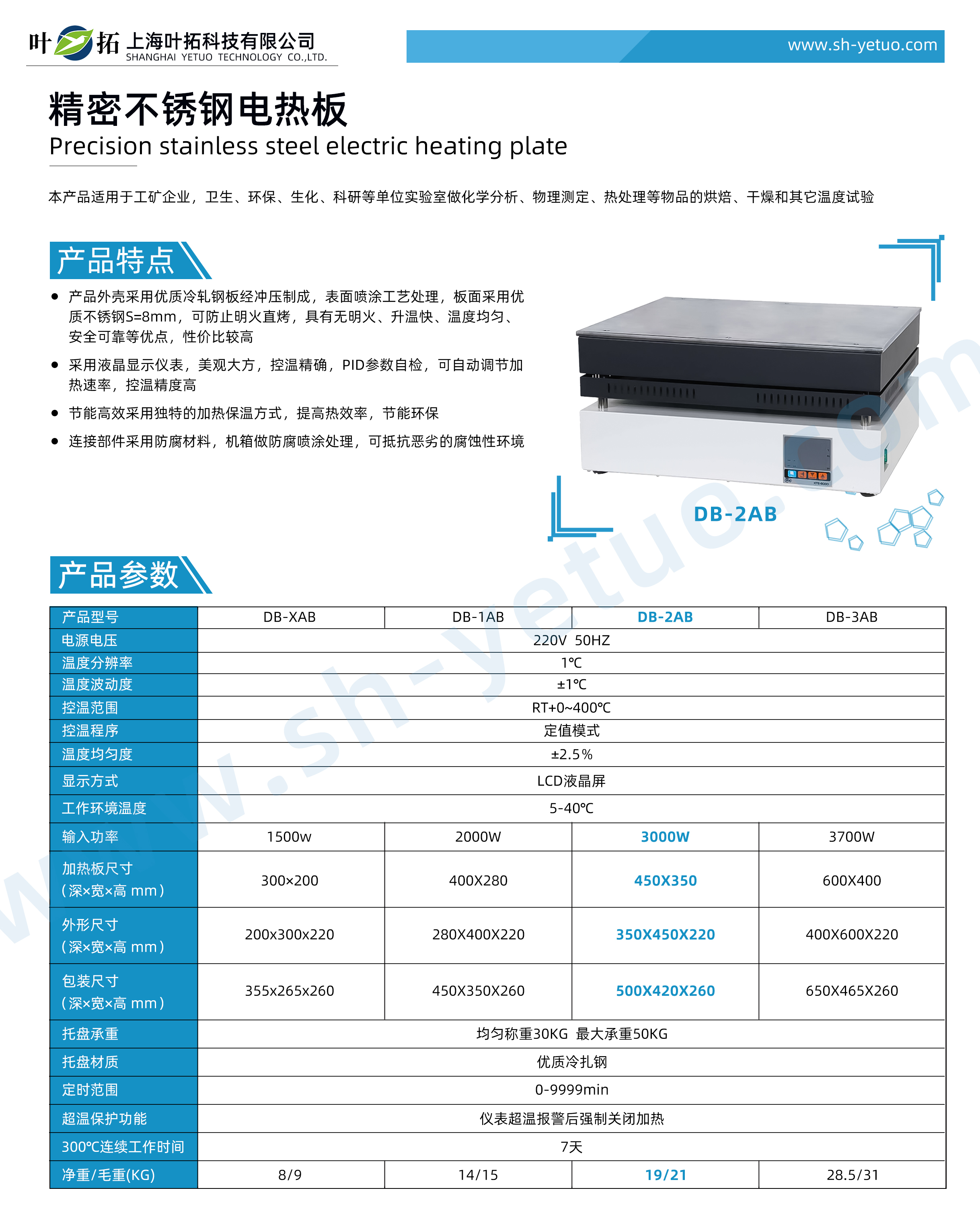 葉拓 DB-2AB 精密不銹鋼電熱板詳細參數(shù)